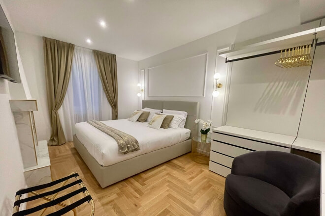 The KING SUITE "Don Marcelo" apartment of Bellagio Luxury Suites is a comfortable and elegant two-room apartment of 47 m², furnished in a contemporary classic style selecting only the best quality finishes, to guarantee an unforgettable experience in accommodation of the highest standards. Perfect to comfortably accommodate up to a maximum of 4 guests.